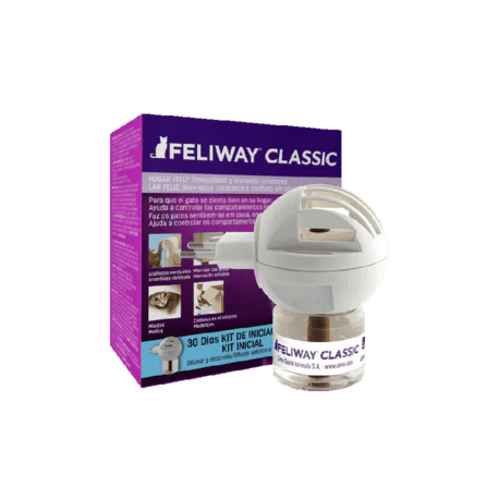 Feliway Classic para que el gato se sienta bien en su hogar. Ayuda a controlar los comportamientos inapropiados como arañazos, marcaje con orina, miedo y cambios en el entorno.