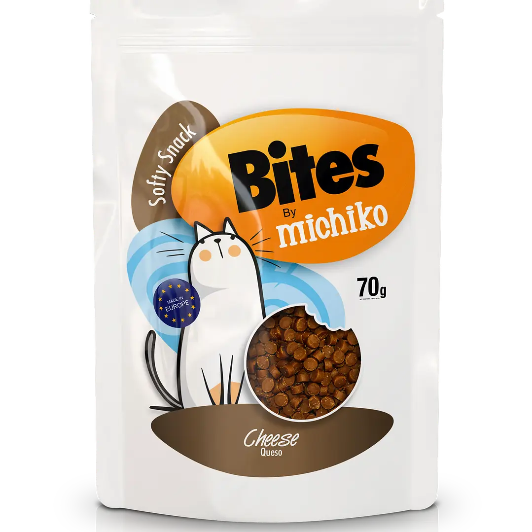 Presentamos el Snack Gato Michiko 70gr, una deliciosa golosina diseñada especialmente para satisfacer el paladar de tu felino. Con irresistibles sabores , este snack blando se convierte en el premio perfecto para consentir a tu gato en cualquier momento del día.