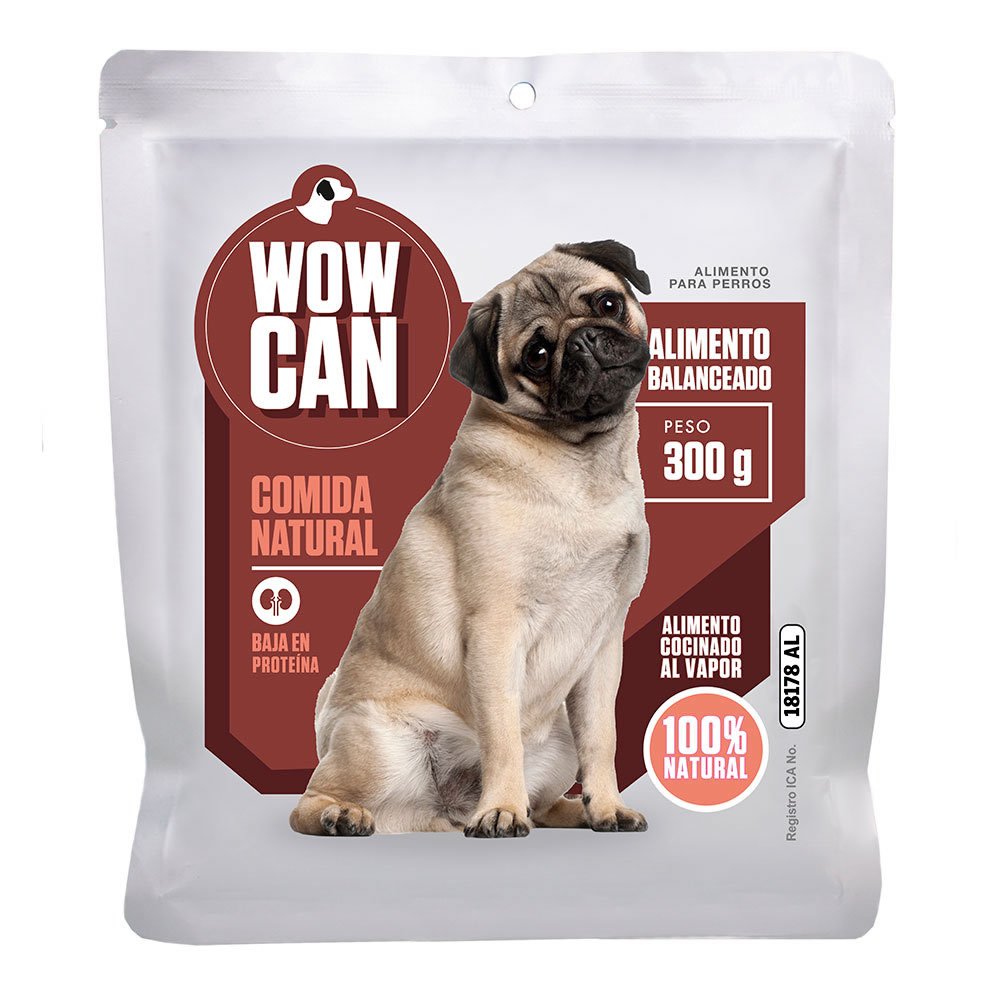 La Dieta Baja en proteína WOW CAN es un alimento completo cocinado al vapor para perros de todas las razas y edades. No utilizamos ningún tipo de conservante, aditivo, o sabor artificial. Es recomendada para perros con insuficiencias renales crónicas o agudas.
